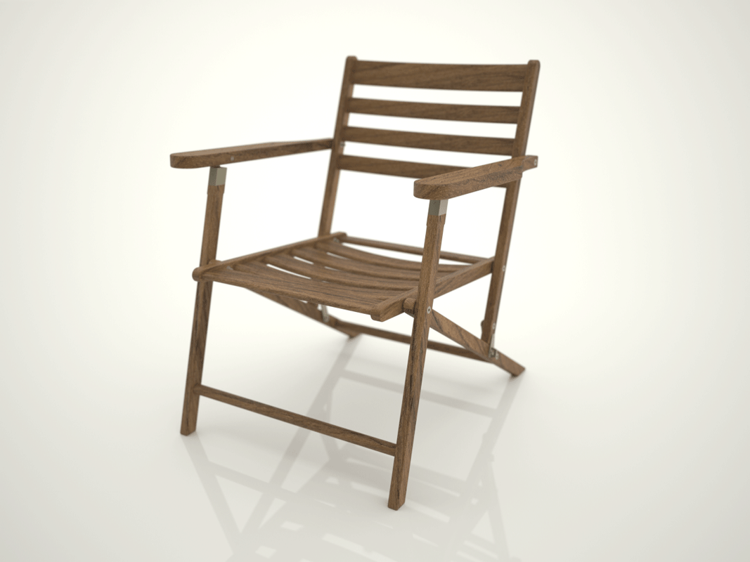 A folding lounge chair design for outdoor use. Manufactured in teak with custom and off-the-shelf solid brass hardware. One of a larger outdoor collection consisting of additional seating and several folding tables.